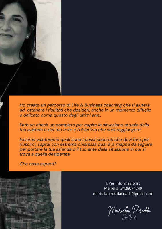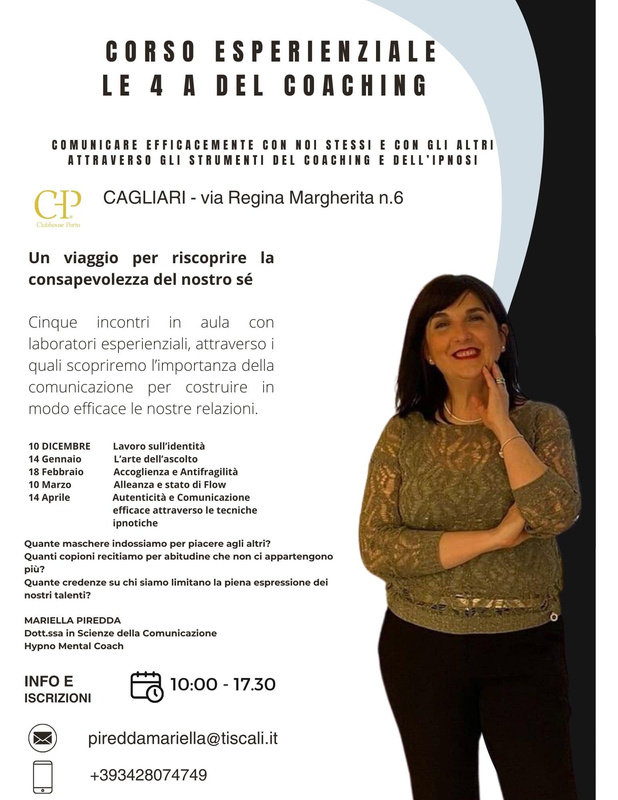 Mi laureo presso l’Università degli Studi di Cagliari, facoltà di studi umanistici, con tesi in Comunicazione ipnotica e Coaching. Ho studiato presso la scuola di coaching in Sardegna “ Coach Academy” dove ho approfondito il metodo del coaching nelle aree dello Sport, del Business e del Life coaching.